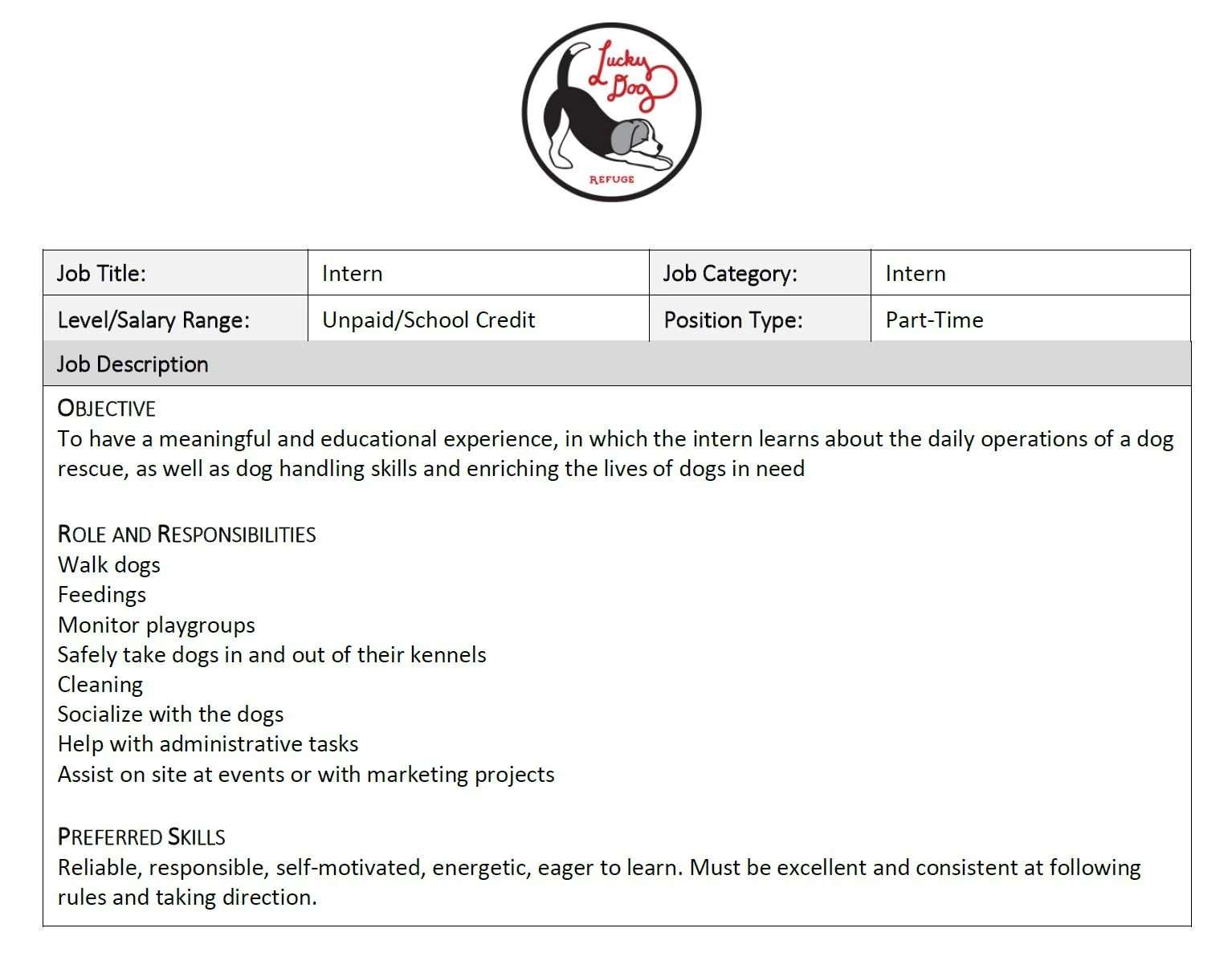 We love to host interns - whether for school credit or community service - and provide them with a meaningful learning experience. Please note that Internship slots are limited and may be filled on a first come first serve basis or based on extent of experience. Thank you for your support and interest in helping rescue dogs.